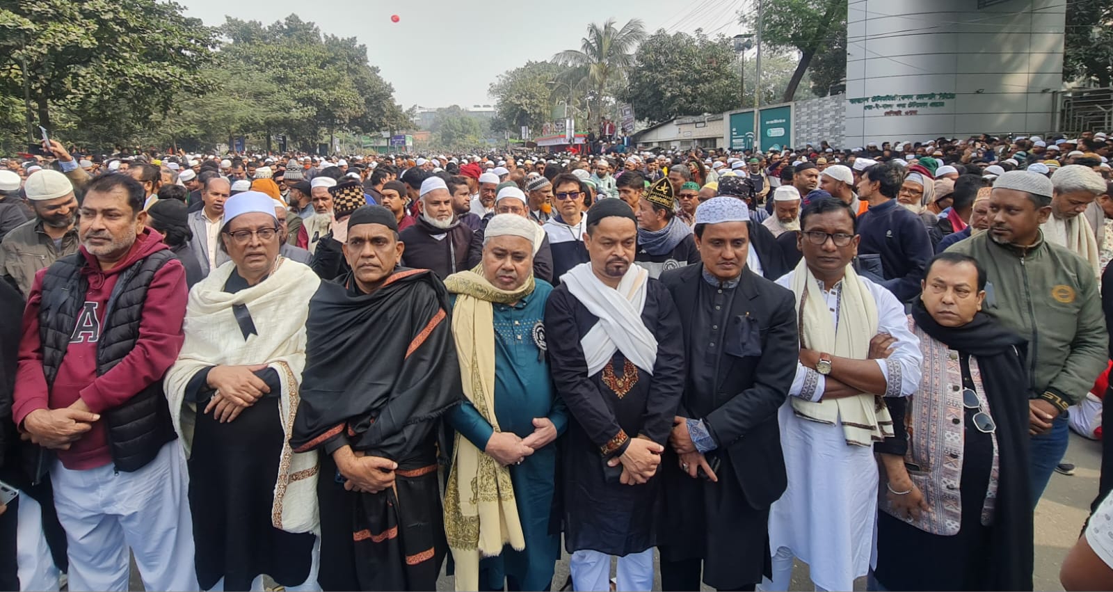 জাতীয় মসজিদ বায়তুল মোকাররমের খতিব মুফতি মোহাম্মদ আবদুল মালেক জানাজায় ইমামতি করেন। জানাজায় প্রধান উপদেষ্টা অধ্যাপক মুহাম্মদ ইউনূস, বিএনপির ভারপ্রাপ্ত চেয়ারম্যান তারেক রহমান, বিএনপির মহাসচিব মির্জা ফখরুল ইসলাম আলমগীরসহ, জামায়াতে ইসলামীর আমির ডা. শফিকুর রহমান, জাতীয় নাগরিক পার্টির আহ্বায়ক নাহিদ ইসলামসহ বিভিন্ন রাজনৈতিক দলের নেতৃবৃন্দ এবং কূটনীতিক ও বিশিষ্টজনেরা অংশ নেন।
