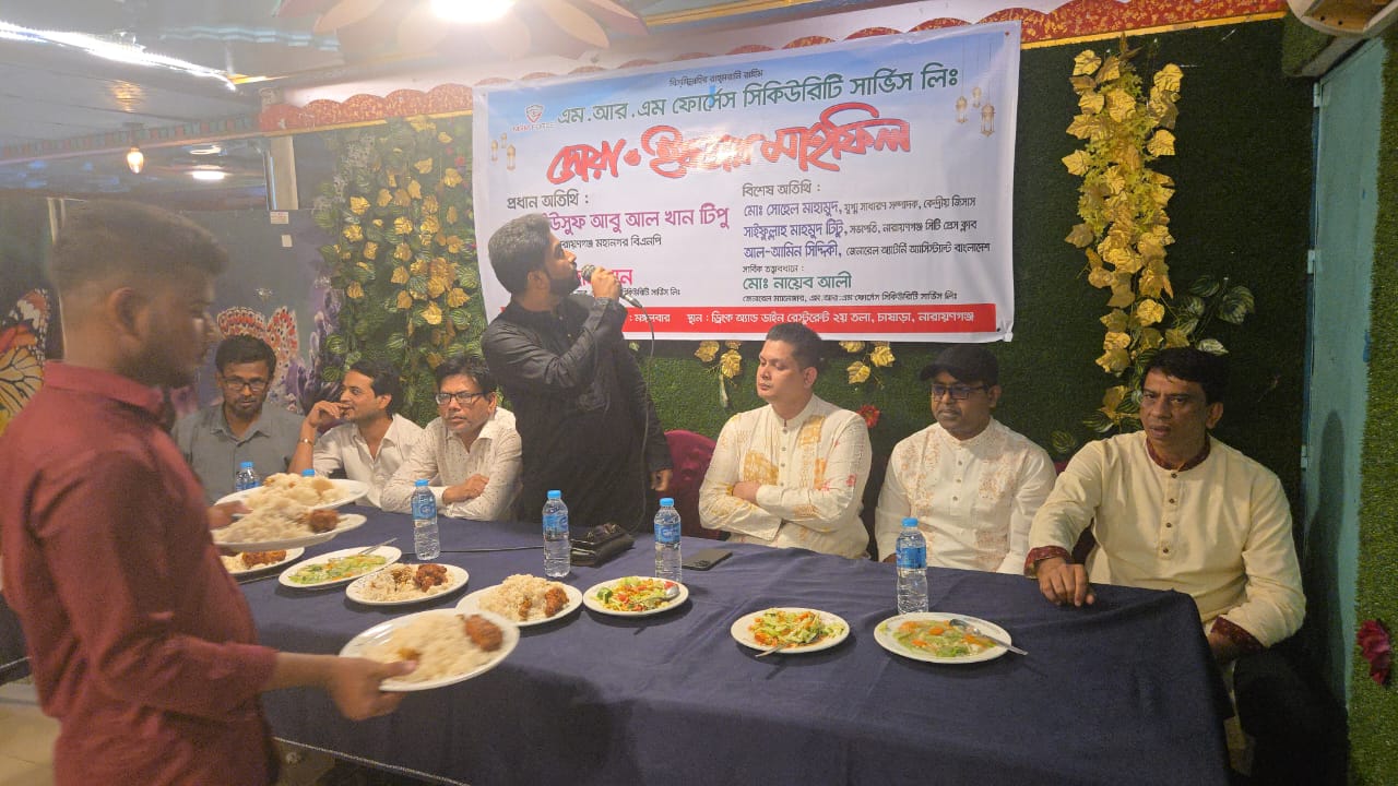নারায়ণগঞ্জে এম. আর. এম ফোর্স সিকিউরিটি সার্ভিস লিমিটেডের উদ্যোগে এক দোয়া ও ইফতার মাহফিল অনুষ্ঠিত হয়েছে। মঙ্গলবার (১৭ মার্চ ২০২৬) নগরীর চাষাড়ায় অবস্থিত একটি রেস্টুরেন্টের ২য় তলায় এই আয়োজন করা হয়।