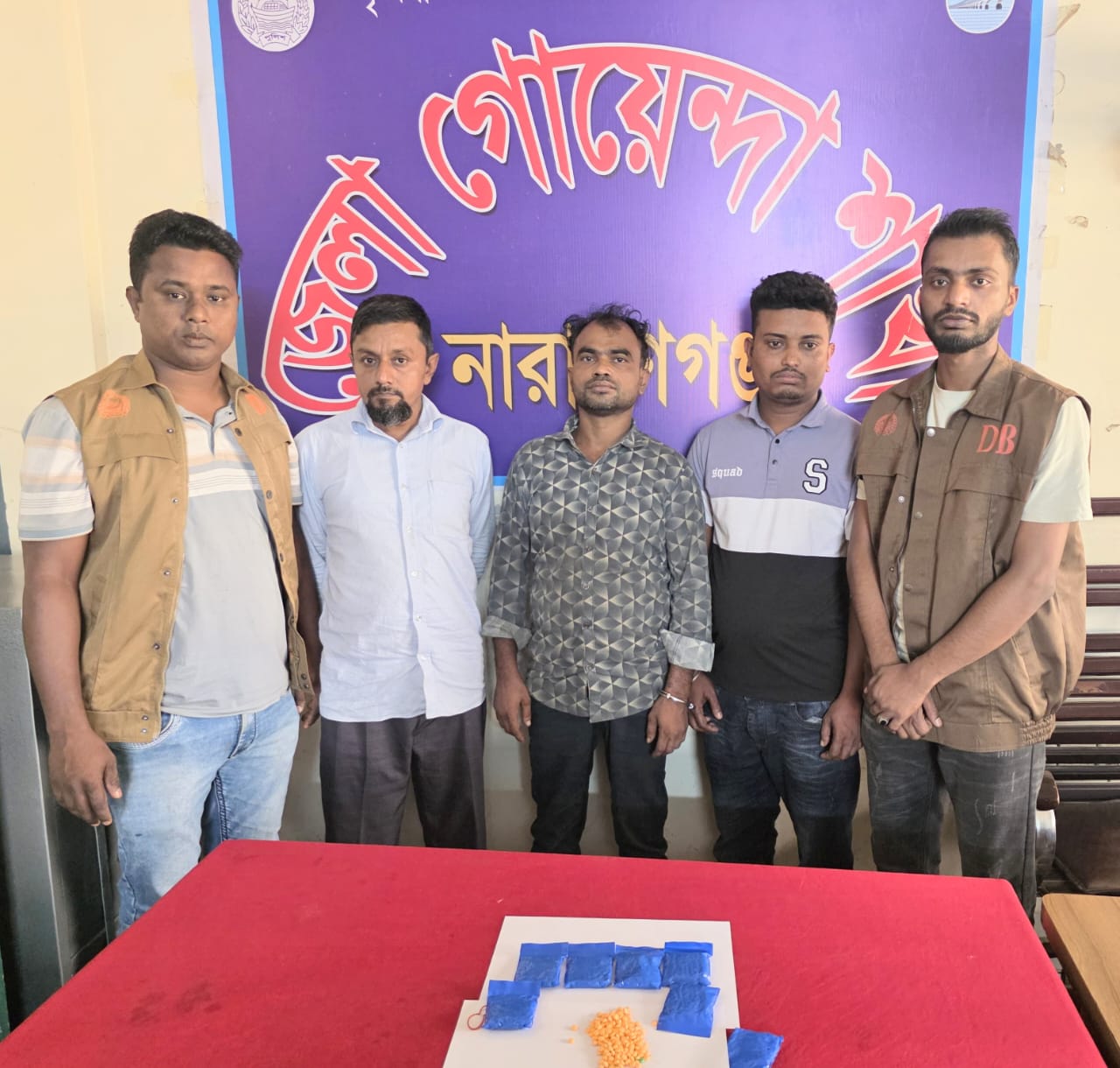 নারাণগঞ্জ জেলার গোয়েন্দা শাখার অতিরিক্ত পুলিশ সুপার মোঃ সোহেল রানা জানান,জেলা গোয়েন্দা ডিবি পুলিশের পরিদর্শক এনায়েত হোসেনের নেতৃত্বে একটি টিম মঙ্গলবার গভীর রাতে সিদ্ধিরগঞ্জ থানাধীন সোনাচড়া সানারপাড় (বিশ্ব রোড) এলাকার ১৩/ই মজুমদার টিম্বার ফার্নিচার এন্ড ডোর নামক প্রতিষ্ঠানের সামনে পাকা রাস্তায় উপর অভিযান চালিয়ে তাদের গ্রেফতার করা হয়েছে।এসময় তাদের হেফাজত থেকে ১৪০০ পিস ইয়াবা উদ্ধার করে।