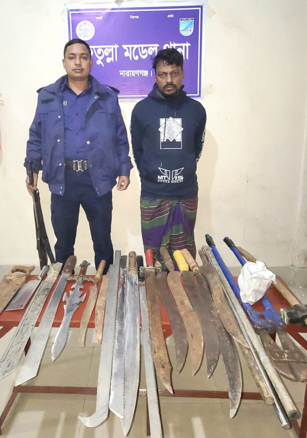 নারায়ণগঞ্জ শহরের গলাচিপা এলাকা থেকে মাদক ও বিপুল পরিমাণ দেশীয় অস্ত্রসহ ফাইটার মনির নামে এক মাদক ব্যবসায়ীকে গ্রেপ্তার করেছে পুলিশ।