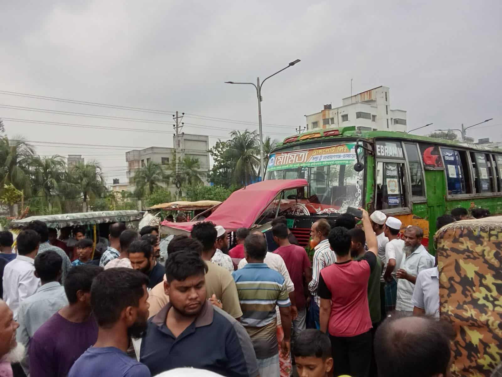এসময় বাসের আঘাতে দুই ইজিবাইক চালক গুরুতর আহত হোন। এ ঘটনায় বিক্ষুব্ধ জনগণ বাসচালক রুবেল (২৪) ও হেলপার নাঈম শেখকে (২৫) গণধোলাই দিয়ে পুলিশে সোপর্দ করা হয়।
