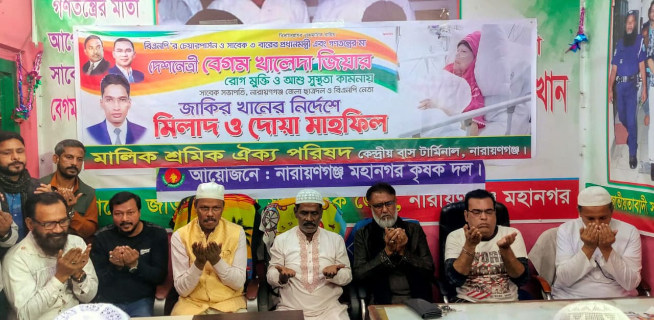 নারায়নগঞ্জ জেলা ছাত্র দলের সাবেক সফল সভাপতি ও নারায়নগঞ্জ মহানগর বিএনপি’র অন্যতম জনপ্রিয় নেতা জাকির খানের নির্দেশে মহানগর কৃষক দল ও বাস মালিকও শ্রমিক ঐক্য পরিষদ এর সার্বিক সহযোগিতায় দেশনেত্রী বেগম খালেদা জিয়ার রোগমুক্তি ও সুস্থতা কামনায়