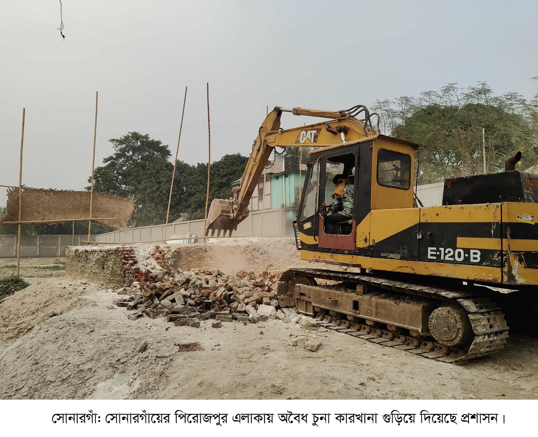 সোনারগাঁয়ে অবৈধ চুনা ও ঢালাই কারখানা গুড়িয়ে দিয়েছে প্রশাসন
