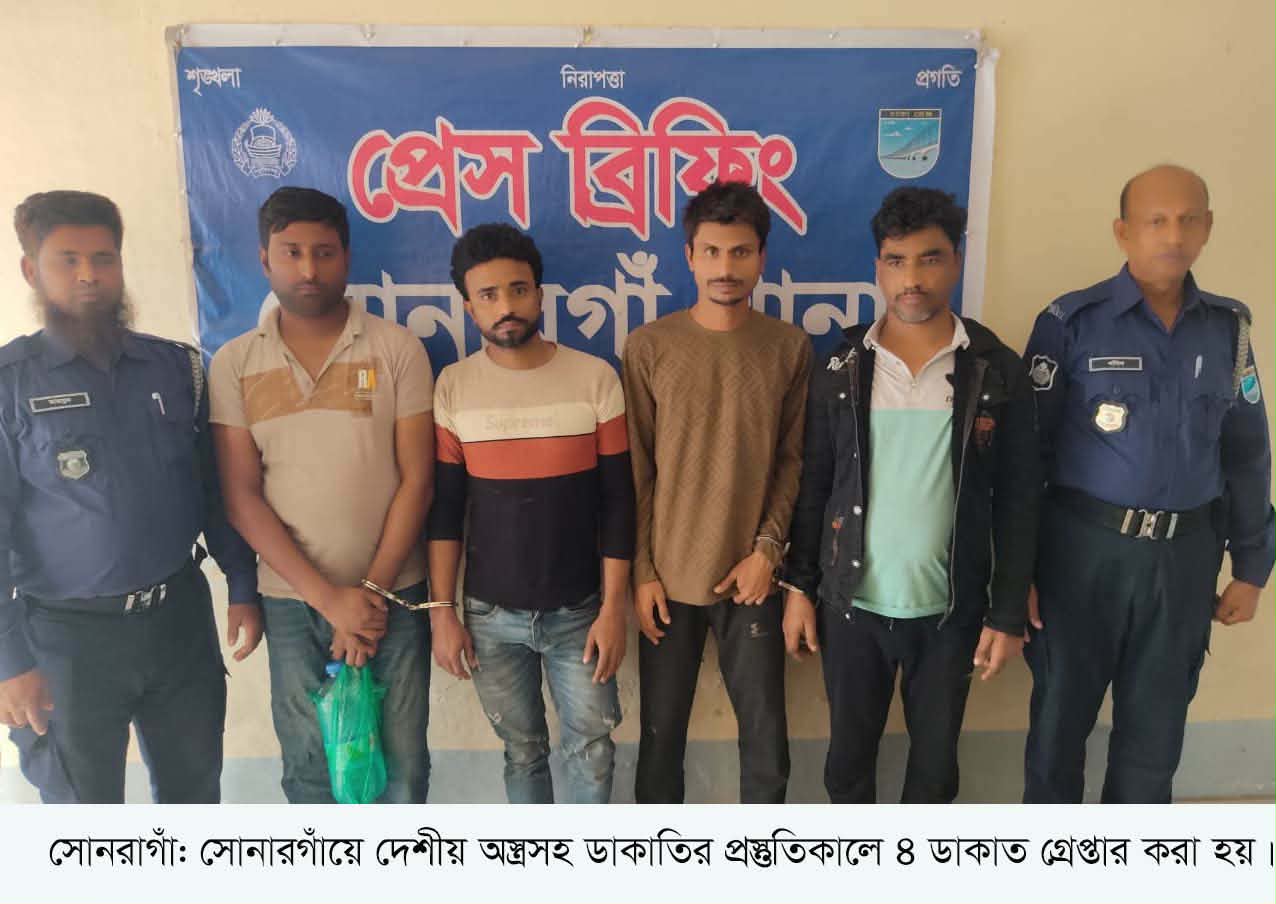 সোনারগাঁয়ে ডাকাতির প্রস্তুতিকালে ৪ ডাকাত গ্রেপ্তার, দেশীয় অস্ত্র উদ্ধার