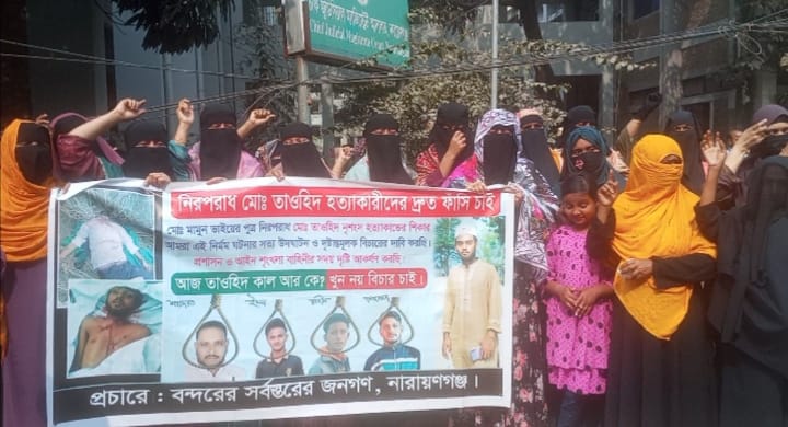 হত্যা কারীদের ফাসি দাবি জানালো তাওহীদের স্বজন ও এলাকাবাসী