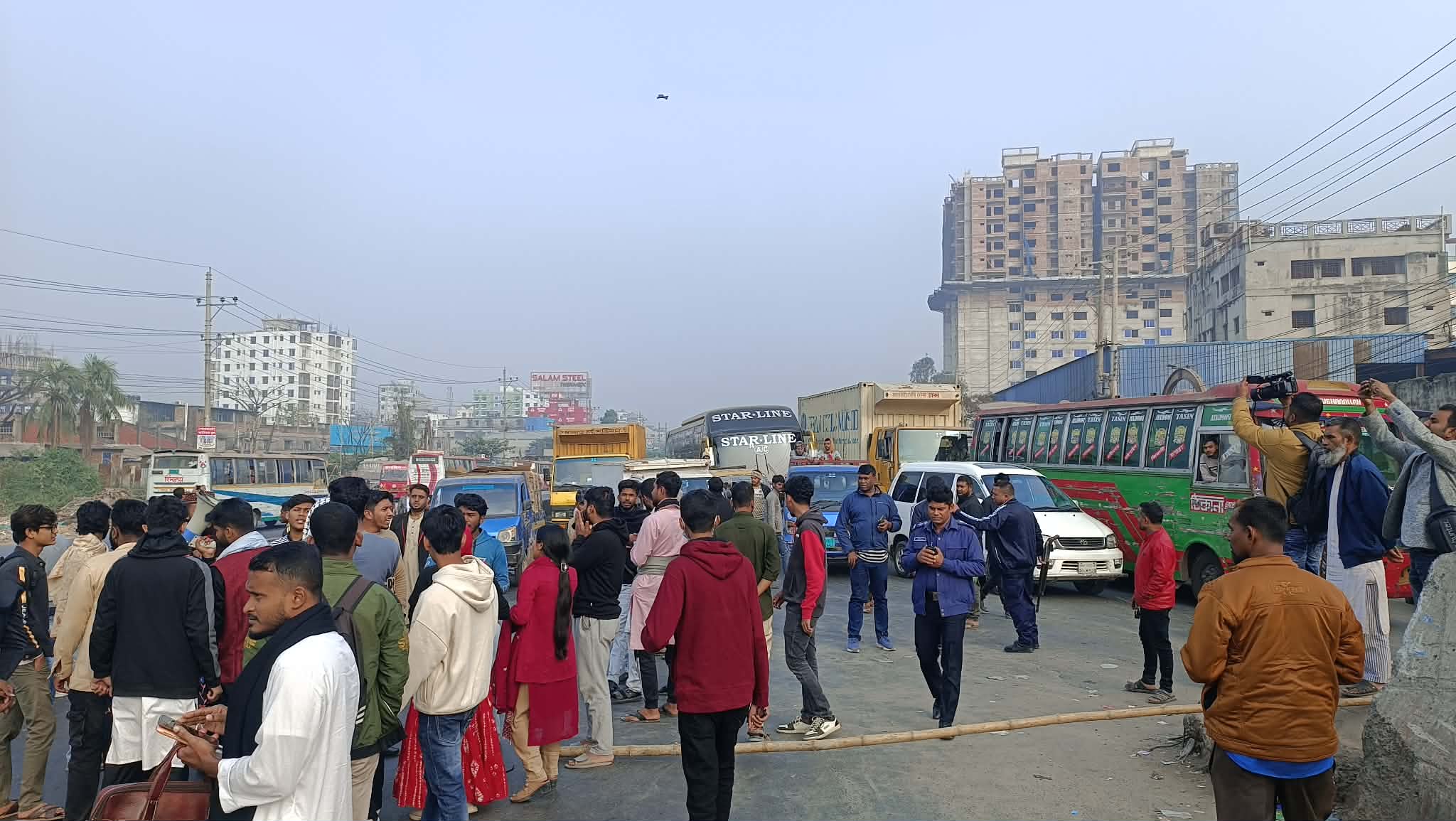 ইনকিলাব মঞ্চের মুখ্যপাত্র শহীদ ওসমান হাদি হত্যার বিচারের দাবিতে ঢাকা-চট্টগ্রাম মহাসড়ক অবরোধ করেছেন নারায়ণগঞ্জের ছাত্র-জনতা। অবরোধের ফলে মহাসড়কের উভয় লেনে যানজট সৃষ্টি হয়েছে।