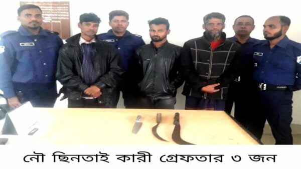 বন্দর প্রতিনিধি : বন্দরে সিমেন্টবাহী ট্রলারের সুকানিকে গলায় অস্ত্র ঠেকিয়ে মোবাইল সেট, নগদ টাকা ও ৫ লিটার সোয়াবিন তেল ছিনিয়ে নেওয়ার সময় ৩ নৌ- ছিনতাইকারীকে গ্রেপ্তার করেছে কলাগাছিয়া নৌ ফাঁড়ি... বিস্তারিত...