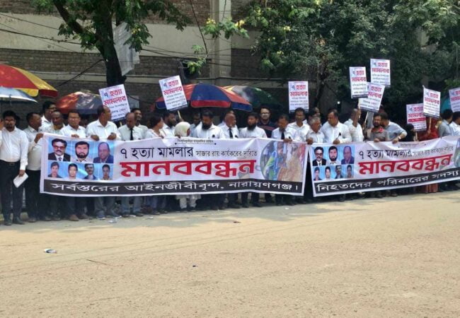 শহর প্রতিনিধি নারায়ণগঞ্জে হত্যায় ছয়জনের যাবজ্জীবন কারাদণ্ড নারায়ণগঞ্জের রূপগঞ্জে জমি ব্যবসা নিয়ে বিরোধের জের ধরে কামাল হোসেন (৩৫) নামে একজনকে হত্যার ঘটনায় ৬ জনকে যাবজ্জীবন কারাদণ্ড দিয়েছেন আদালত। রোববার (২৪... বিস্তারিত...