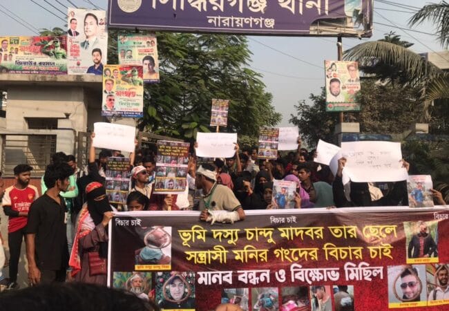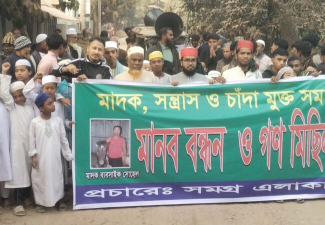 বন্দর প্রতিনিধি: বন্দরে মাদক,সন্ত্রাস ও চাঁদাবাজ মুক্ত সমাজ চাই এ শ্লোগানে মানববন্ধন ও বিক্ষোভ মিছিল বের করেছে বিক্ষোভদ্ধ এলাকাবাসী। শনিবার (১০ জানুয়ারী) বিকেল ৩টায় বন্দর উপজেলার মীরকুন্ডী ব্রীজে মানববন্ধন শেষে ... বিস্তারিত...