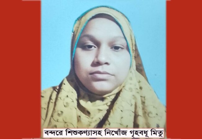 বন্দর প্রতিনিধি নারায়ণগঞ্জের বন্দরে ৪ বছরের শিশুকণ্যাসহ ফাতেমা রিফাত মিতু (২৪) নামে এক গৃহবধূ নিখোঁজ রয়েছে। গত ৫ দিন ধরে বিভিন্ন স্থানে খোঁজাখুঁজি করে না পেয়ে পরিবারের সদস্যদের মাঝে শংকা... বিস্তারিত...