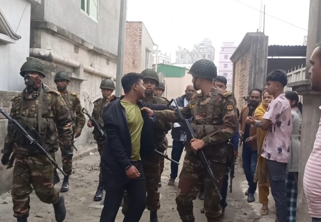 ফতুল্লা প্রতিনিধি নারায়ণগঞ্জের ফতুল্লার লালখা শিয়াচর এলাকায় স্থানীয় প্রভাব বিস্তারকে কেন্দ্র করে বিএনপির বিবদমান দুই গ্রুপের মধ্যে সংঘর্ষের ঘটনা ঘটেছে। সংঘর্ষের পরপরই সেনাবাহিনী, র্যাব ও পুলিশের সমন্বয়ে গঠিত যৌথবাহিনী ঘটনাস্থলে... বিস্তারিত...