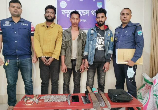 সোনারগাঁ প্রতিনিধি: নারায়ণগঞ্জের সোনারগাঁয়ে ডাকাতি প্রস্তুতিকালে চার ডাকাতকে গ্রেপ্তার করেছে পুলিশ। এসময় তাদের কাছ থেকে দেশীয় অস্ত্র রামদা, চাপাতি, চাইনিজ কুড়াল ও হাতুড়ি উদ্ধার করা হয়েছে। গত শনিবার সন্ধ্যায় ঢাকা-চট্টগ্রাম... বিস্তারিত...