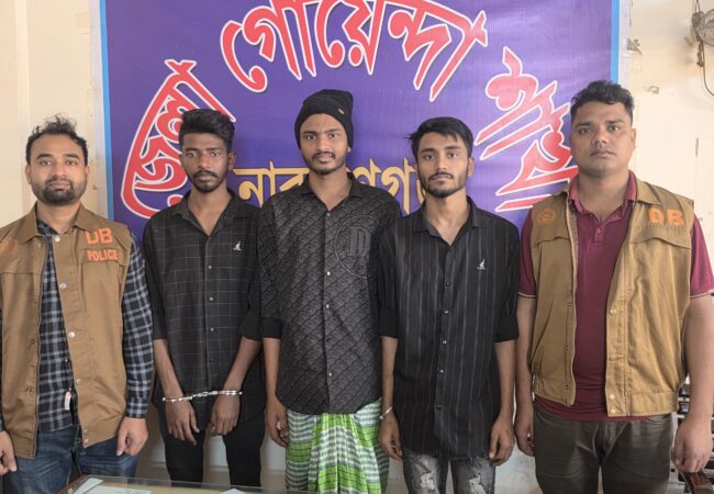 শহর প্রতিনিধি নারায়ণগঞ্জ - ঢাকা লিংক রোড় ভুইগড় থেকে ৬ ছিনতাইকারীকে গ্রেফতার করেছে জেলা গোয়েন্দা ডিবি পুলিশ । সোমবার ভোর রাতে তাদের গ্রেফতার করা হয় ।পরে তাদের ফতুল্লা মডেলথানায় হস্তন্তর... বিস্তারিত...