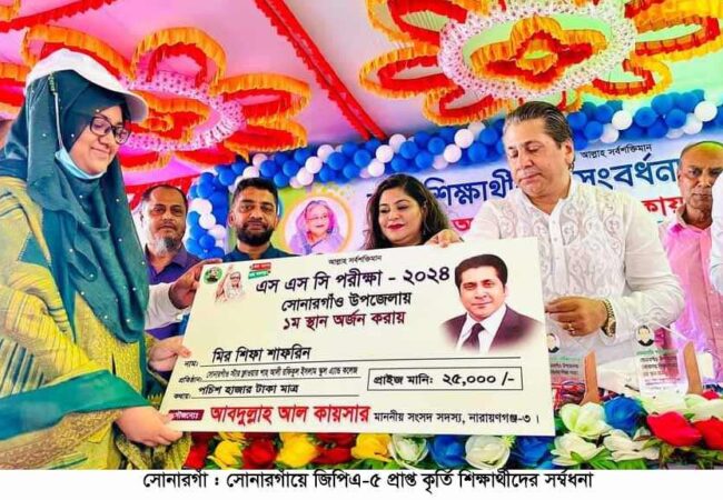 সোনারগাঁ প্রতিনিধি : নারায়ণগঞ্জের সোনারগাঁয়ে কৃর্তি শিক্ষার্থীদের সর্ম্বধনা দেয়া হয়েছে। গতকাল বুধবার সকালে সোনারগাঁ উপজেলা পরিষদ চত্বরে এস এস সি ও এর সমমনায় জিপিএ-৫ প্রাপ্ত শিক্ষার্থীদের এ সর্ম্বধনা দেয়া হয়।... বিস্তারিত...