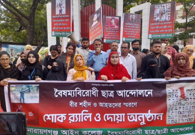 শহর প্রতিনিধি বৈষম্যবিরোধী ছাত্র আন্দোলনে নিহত ও আহত সকল শহীদ ও বীরদের স্বরনে নারায়ণগঞ্জ আইন কলেজের শিক্ষার্থীরা ১৩ই আগস্ট মংগলবার শোক র্যালী ও দোয়ার আয়োজন করেছেন। উক্ত শোক র্যালীতে... বিস্তারিত...